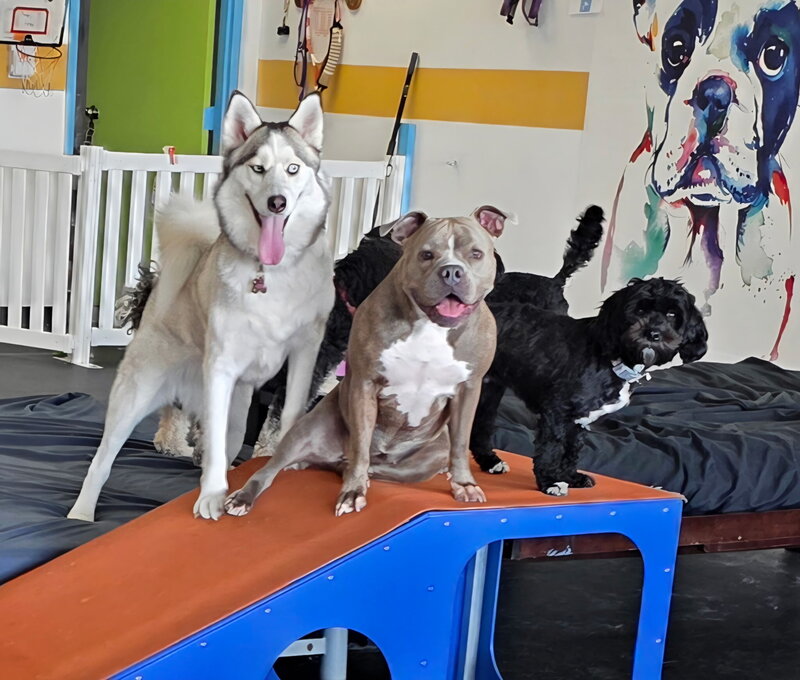 7. All dogs must be kept on a leash when in the parking lot, entering the facility, and until they are in the play area.